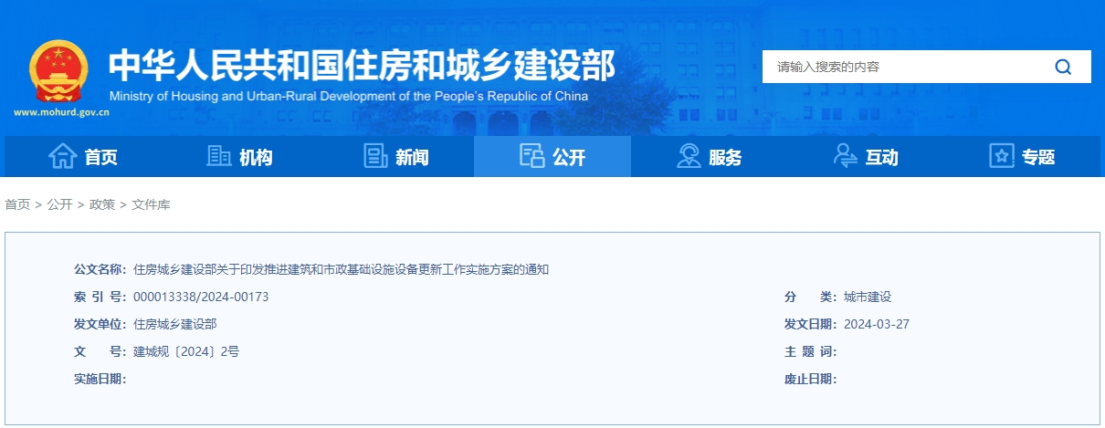 住房城鄉建設部印發實施方案部署推進建筑和市政基礎設施設備更新工作