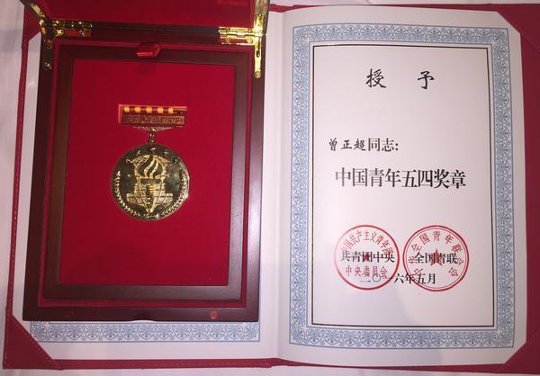 快訊:曾正超榮膺第20屆“中國青年五四獎章”
