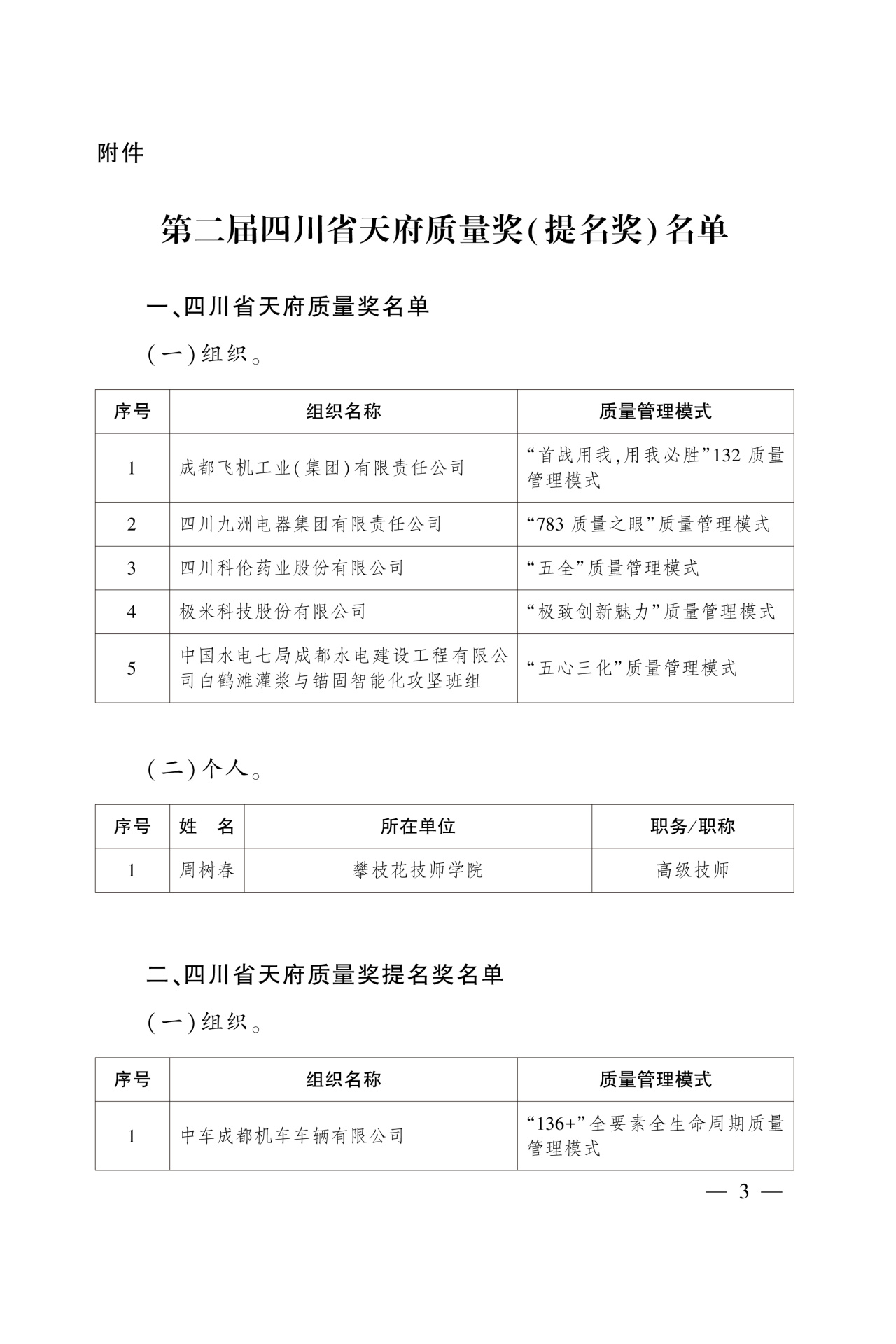 附件:第二屆四川省天府質量獎(提名獎)名單