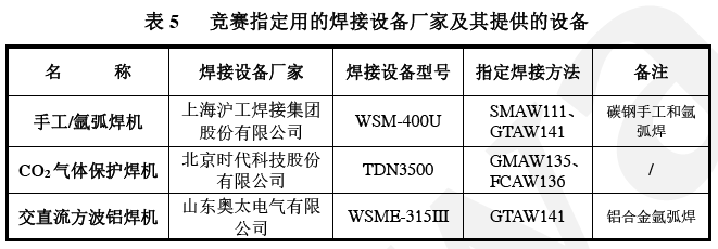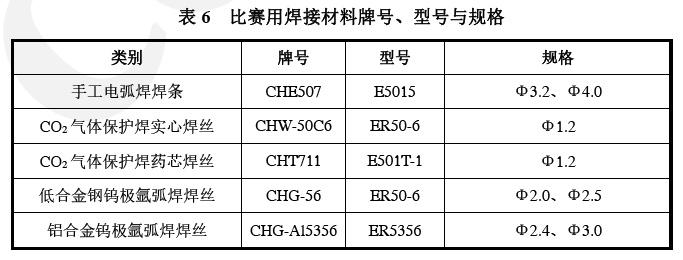 ②競賽所用的焊接材料均由四川大西洋焊接材料股份有限公司提供,焊接材料規格、型號和牌號見表下表。