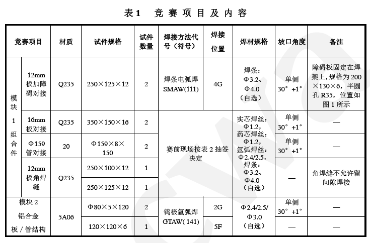 1)競賽時間包括打磨、組對、焊接、清理、休息、飲水、上洗手間的時間。