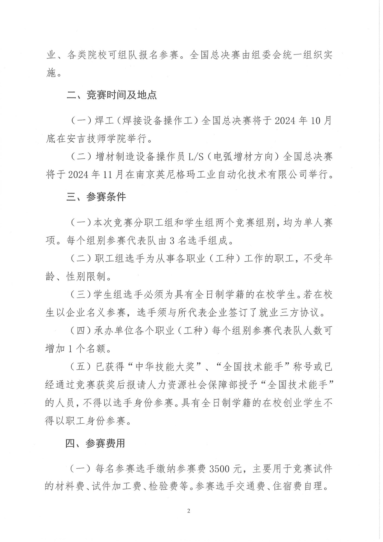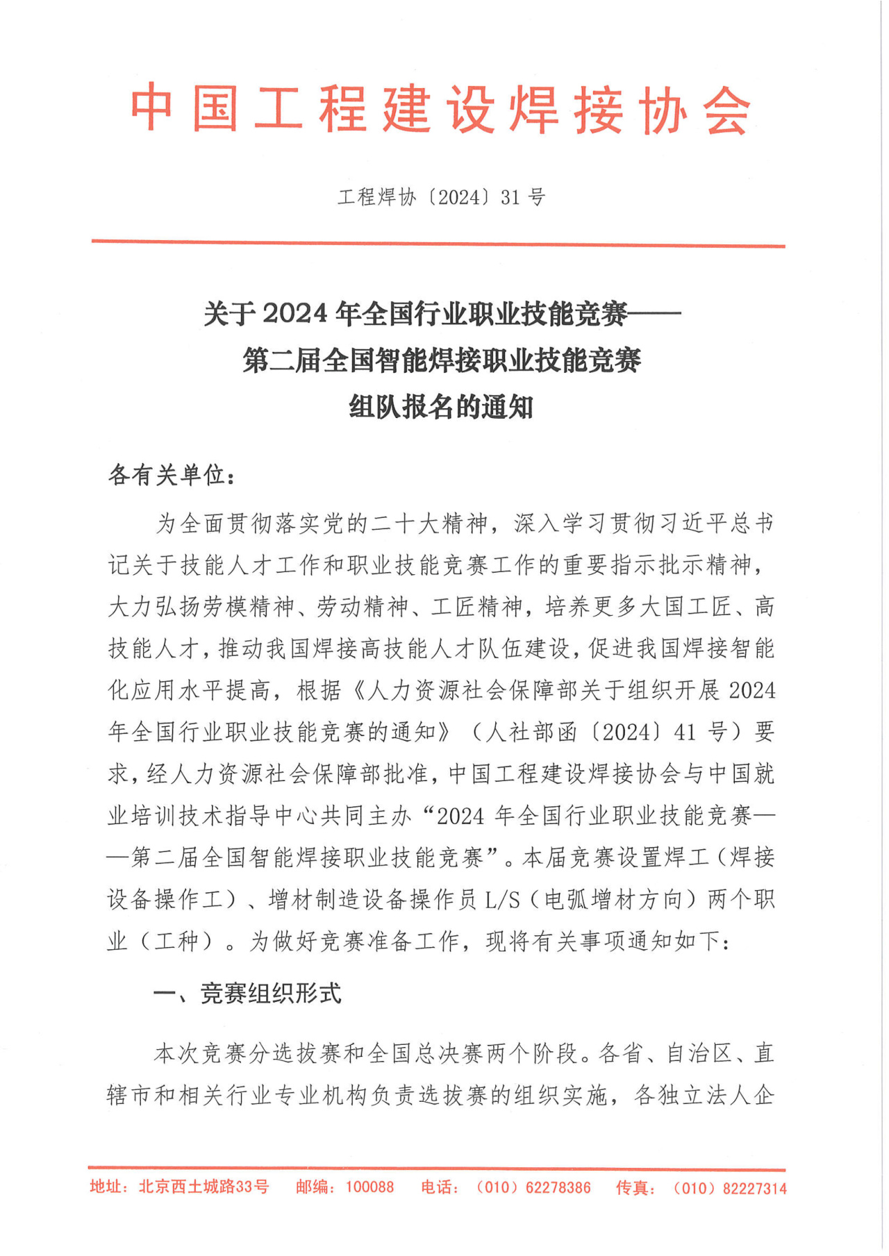 關于2024年全國行業職業技能競賽—— 第二屆全國智能焊接職業技能競賽組隊報名的通知
