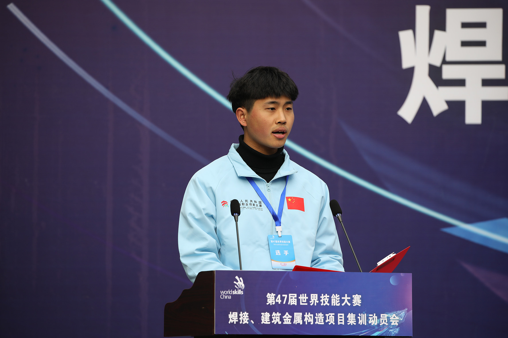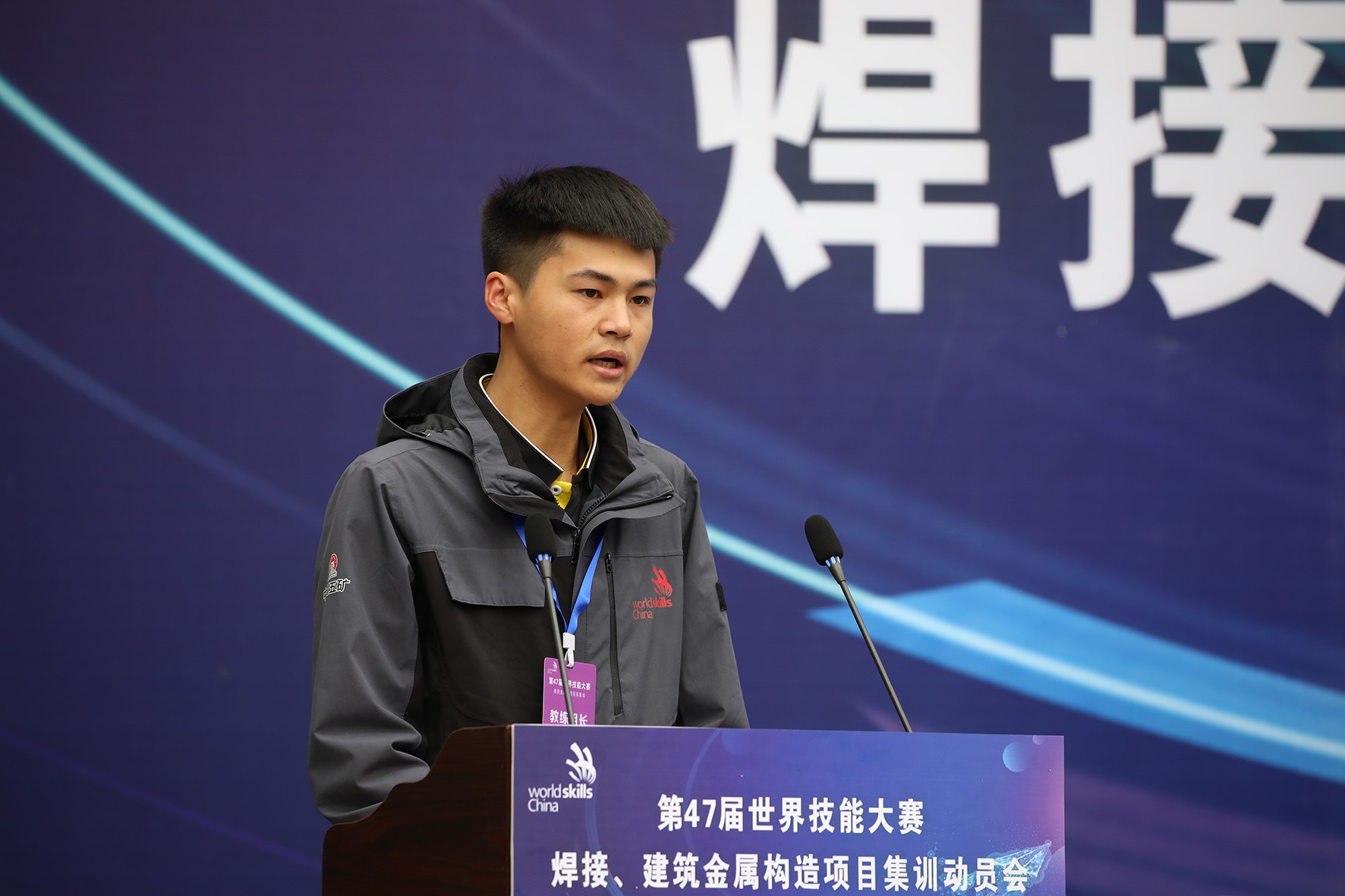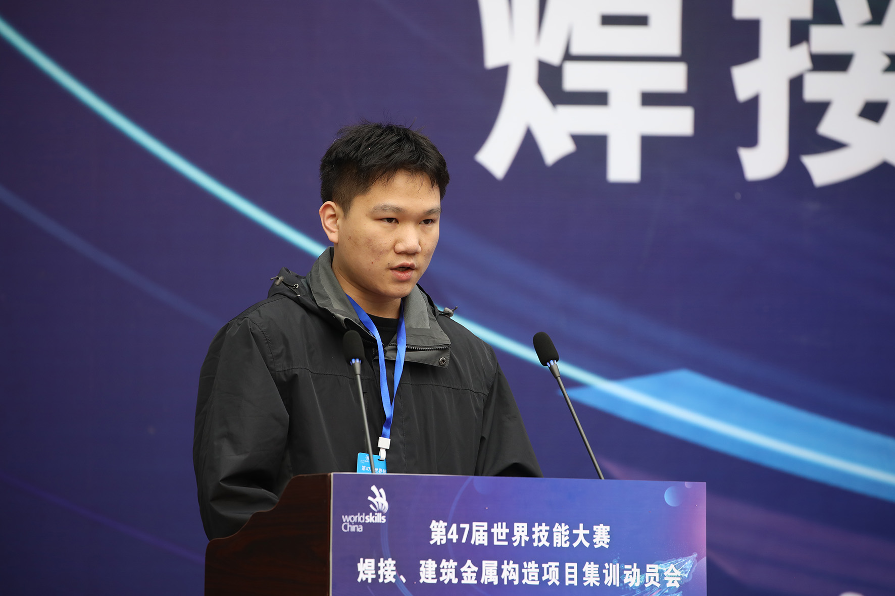 建筑金屬構造項目選手代表慈溪技師學院周烽、焊接項目選手代表湖南航空技師學院董晨陽、建筑金屬構造項目專家教練團隊代表攀枝花技師學院卞濤、焊接項目專家教練團隊代表寧波技師學院夏琦男分別發言。