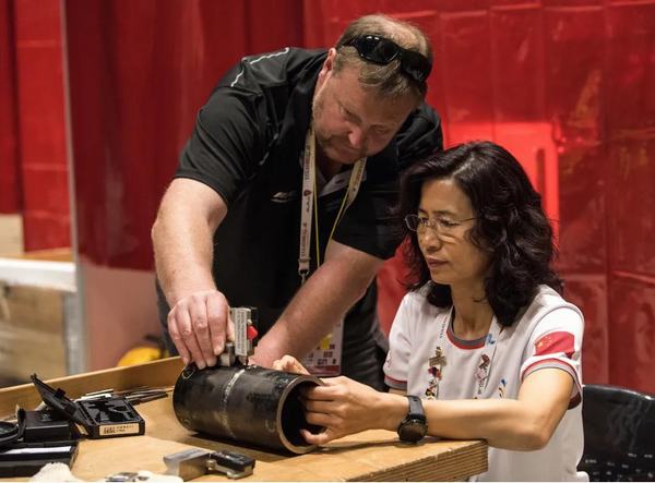 第44屆世賽,我擔任了焊接項目專家組長。作為上一屆的金牌項目,第一次擔任專家組長的我,內心的壓力不言而喻。焊接項目是世賽競爭最激烈的賽項之一,韓國、日本等傳統強國實力強勁,選手技術穩定,中國臺灣地區、泰國等等后起之秀也不時有亮眼表現,特別是韓國曾經創下過五連冠的佳績。而世賽的規則,也注定每一次的備賽都是從新開始:選手是新的,試題是新的,評分標準和競賽規則也在不斷推陳出新。而我,對于世賽專家這個角色,也是新人。既然一切從新,就必須從零開始,我堅信只要敢拼就能贏。經過三屆世賽,人社部相關部門已經為世賽選手的選拔、培訓制定了較為完善的管理要求和指導意見,焊接項目也逐步積累出一套較為完整科學的訓練方案。特別是教練組組長周樹春老師近乎魔鬼般的訓練方法,對錘煉選手過硬本領和抗壓能力成效顯著。面對世賽規則變化的挑戰,我們制定了“以不變應萬變、以萬變應改變”的訓練方法;根據選手特點量身定做訓練方案,達到“揚長補短”的強化目的。科學的訓練和艱苦的努力,讓我們的團隊更加成熟自信。在阿布扎比賽場,選手以94.63分的歷史最好成績奪得第一名,實現了焊接項目蟬聯金牌的目標。看著寧顯海從容、自信的登上領獎臺,我不禁又一次熱淚盈眶,萊比錫的不甘,圣保羅的欣喜,到阿布扎比的從容,我看到我們年輕一代正在一步步地走向成熟,我們正以前所未有的精神面貌,滿懷信心走向世界。