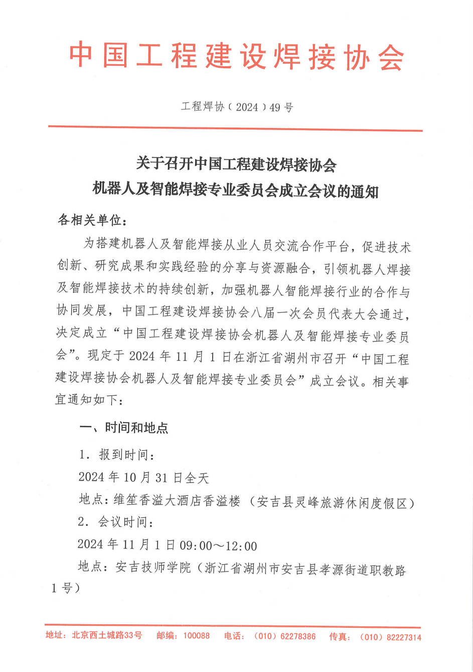 關于召開中國工程建設焊接協會機器人及智能焊接專業委員會成立會議的通知.pdf