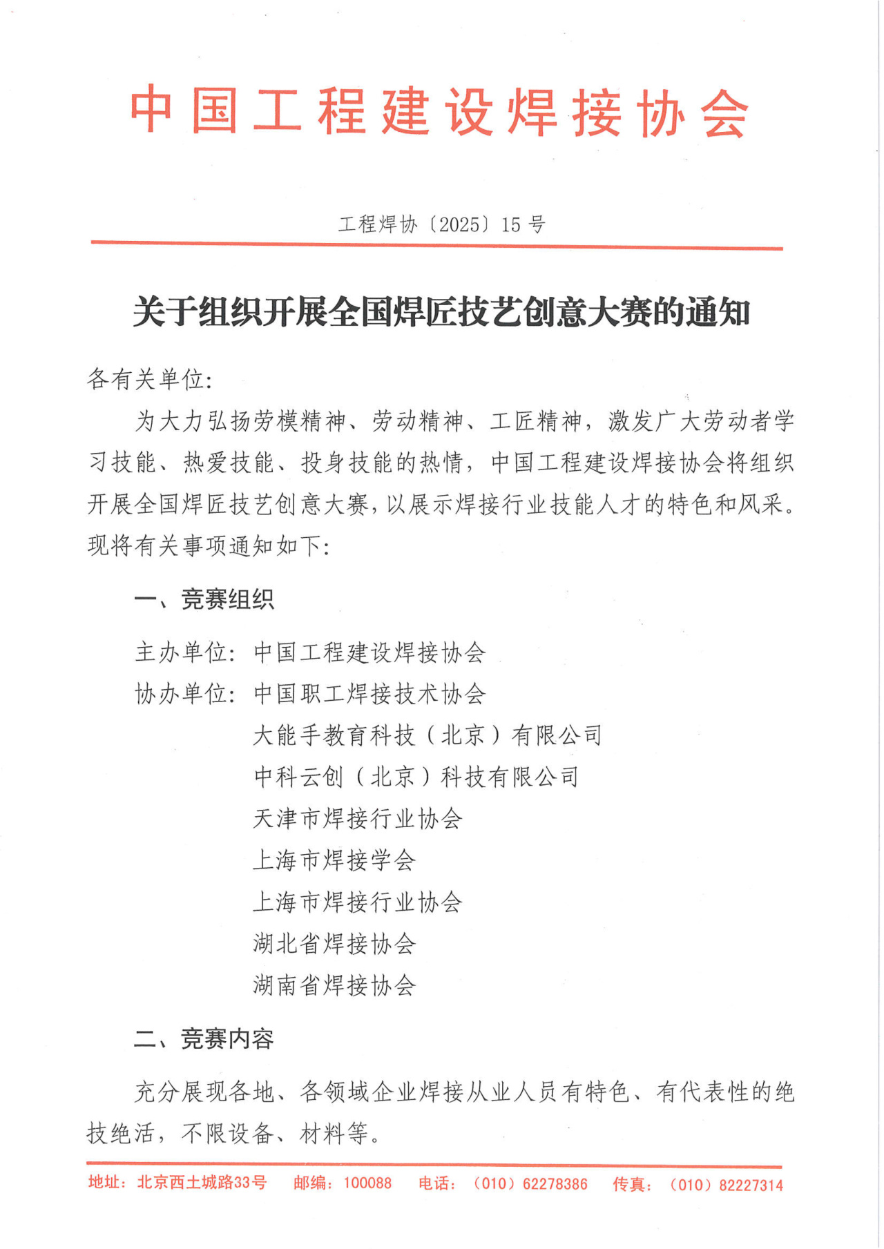 關于組織開展全國焊匠技藝創意大賽的通知