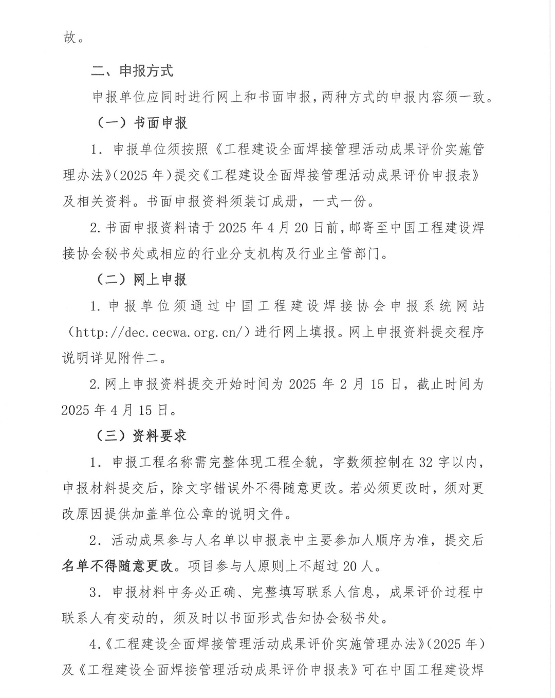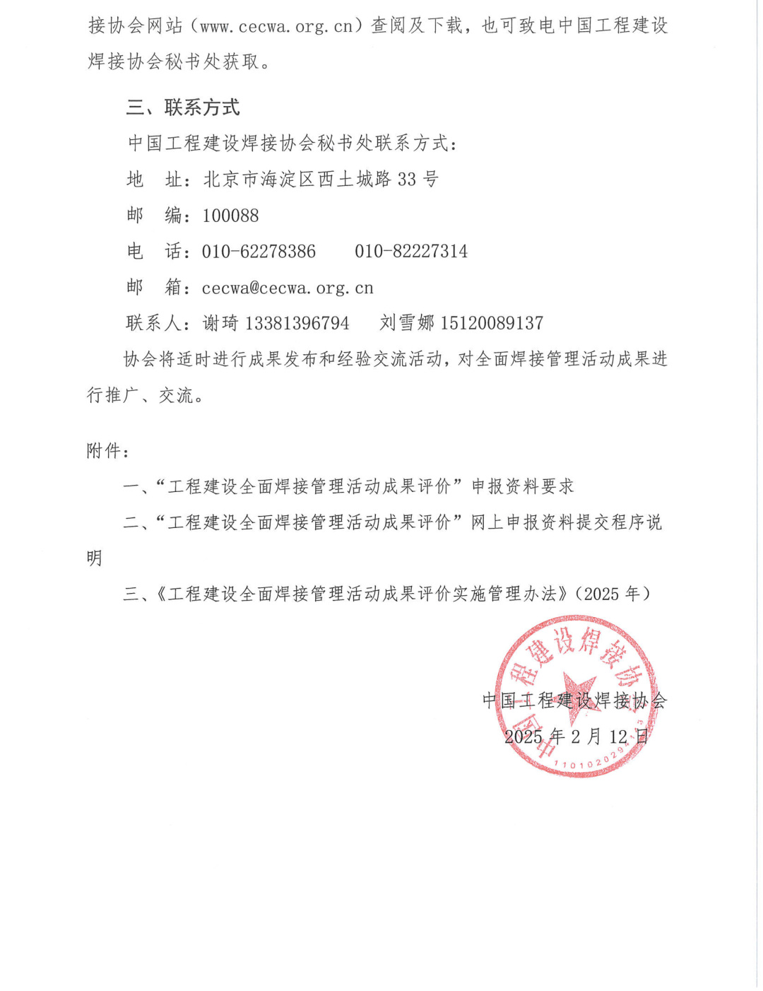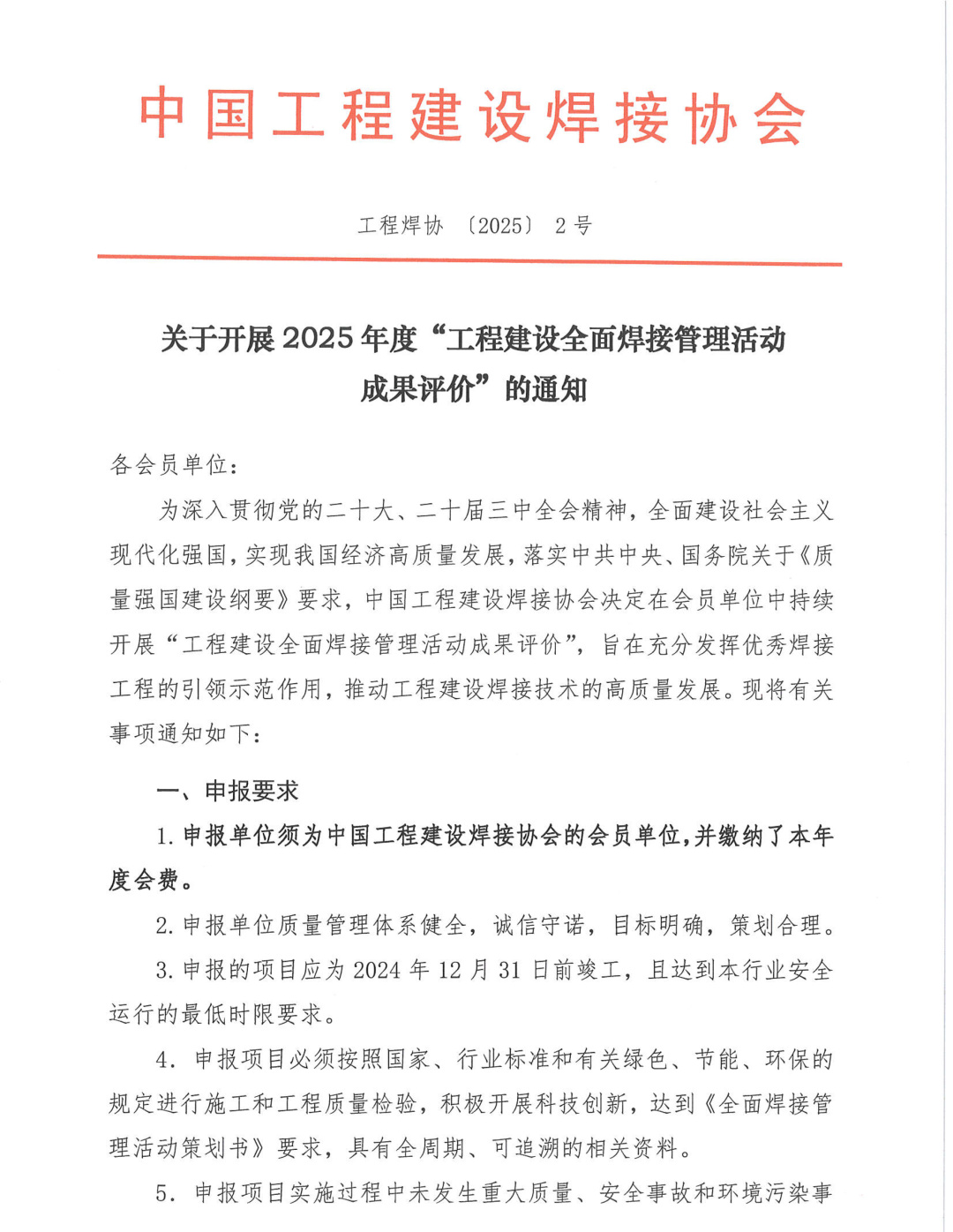 關于開展2025年度“工程建設全面焊接管理活動成果評價”的通知