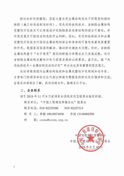 2019'中國工程建設焊接論壇——先進檢測技術 · 金屬結構完整性評定