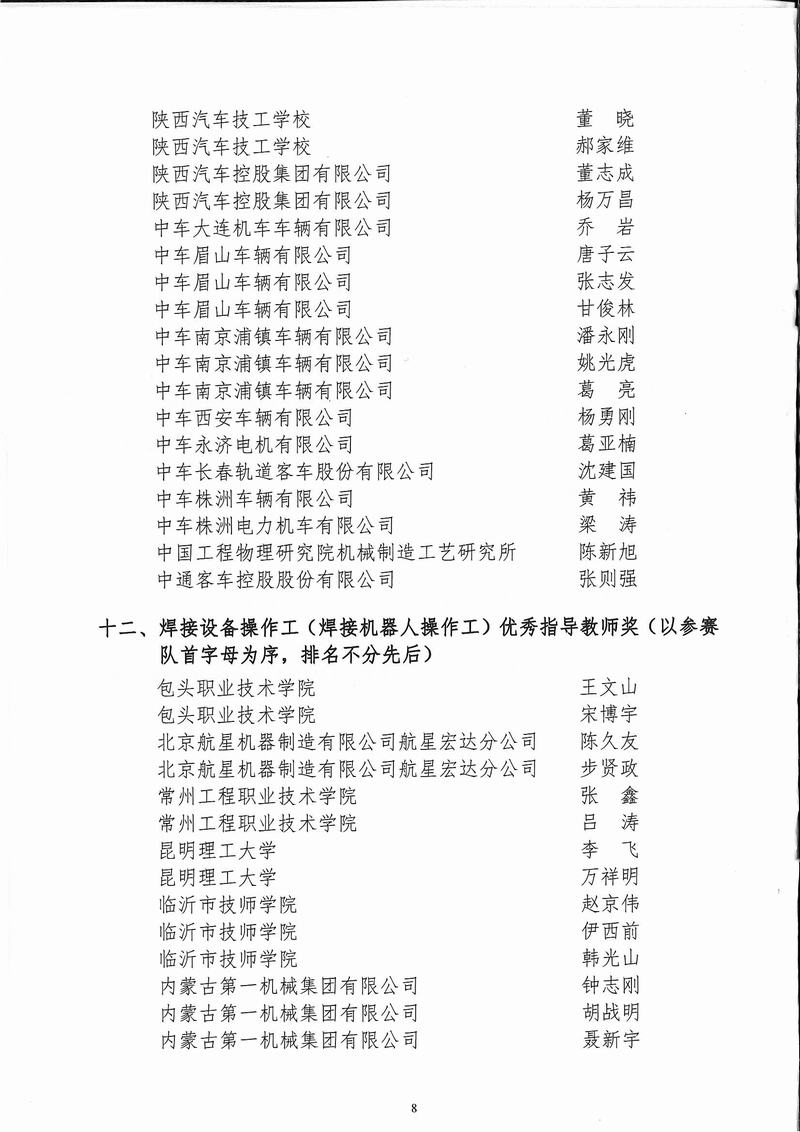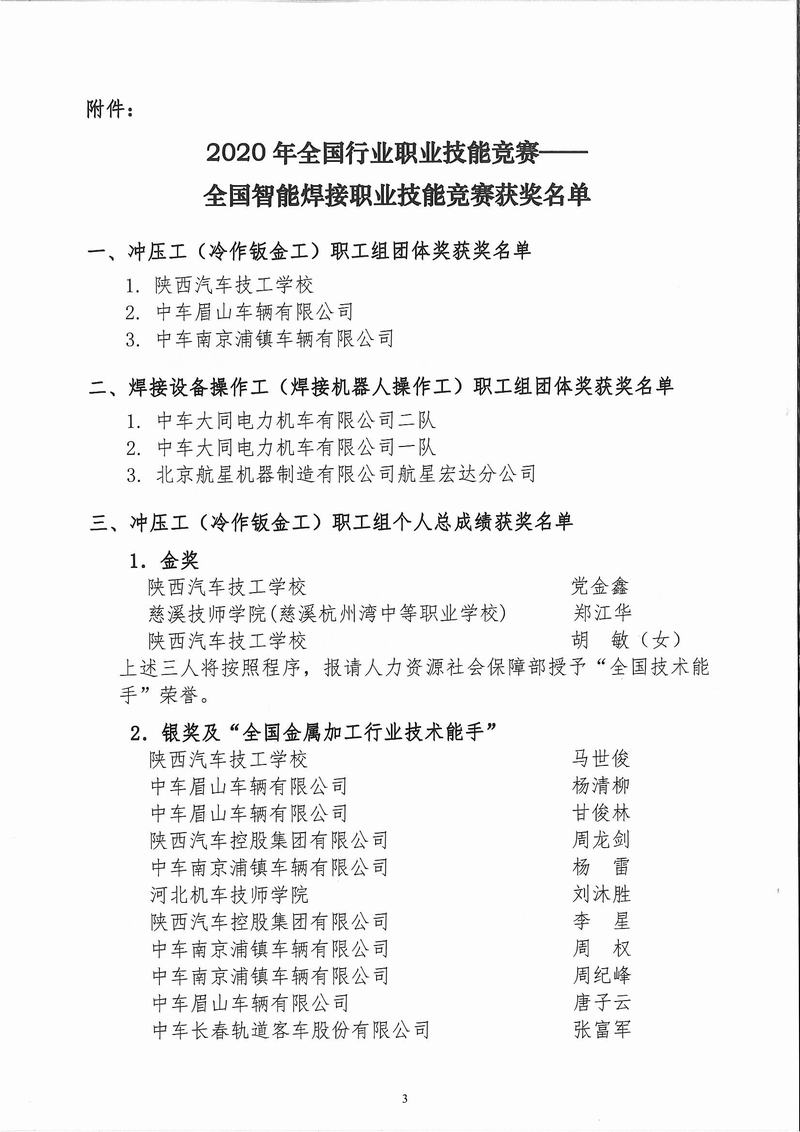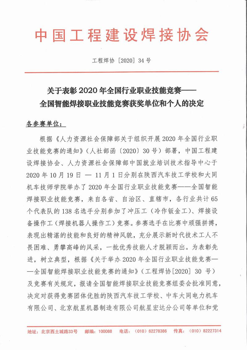 關(guān)于表彰2020年全國行業(yè)職業(yè)技能競賽——全國智能焊接職業(yè)技能競賽