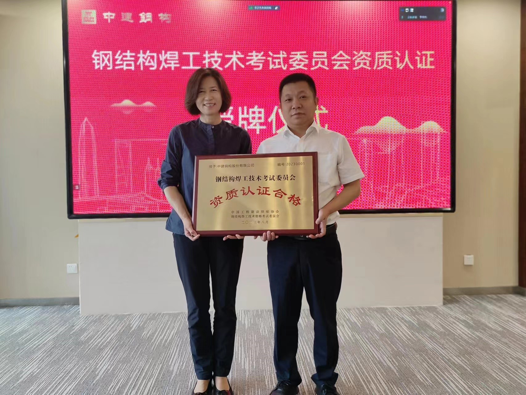 8月24日至25日,中國工程建設焊接協會組織專家對中建鋼構股份有限公司(簡稱“中建鋼構”)進行中國工程建設焊接協會基層鋼結構焊工技術資格考試委員會(簡稱“基層鋼結構焊考委”)資質評估,按照有關標準和程序通過認定,并當場授牌。