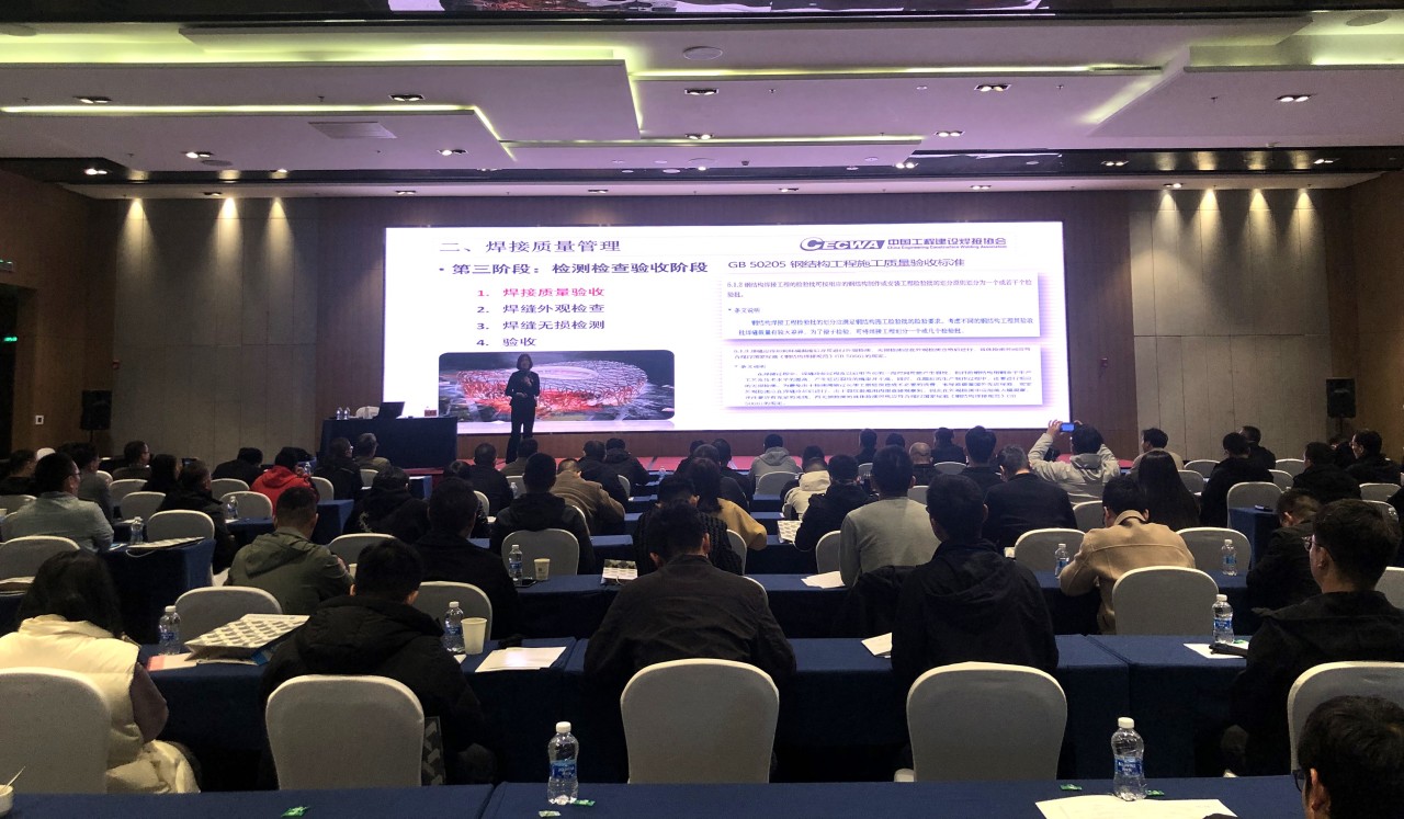 協會專家、中建鋼構四川有限公司質量監督管理部經理兼制造廠副廠長韓二陽針對“建筑及相關行業工程全過程焊接質量管理”進行了講解。