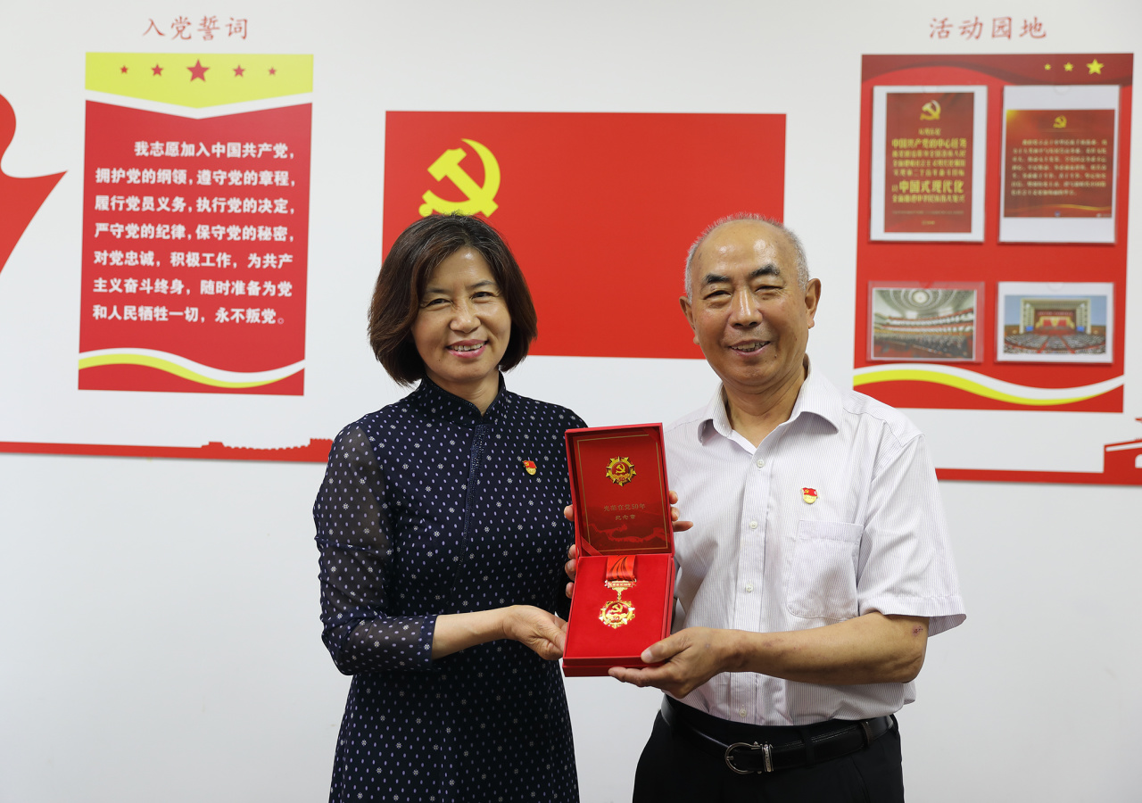 6月30日,在即將迎來黨的生日前夕,協會黨支部組織召開了紀念中國共產黨建黨102周年座談會,并為支部第一個入黨達到50周年的老黨員黃長路同志頒發了中共中央“光榮在黨50周年”紀念章。黨支部書記主持會議,全體黨員參加。