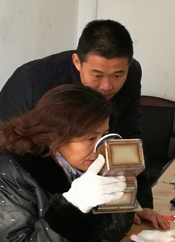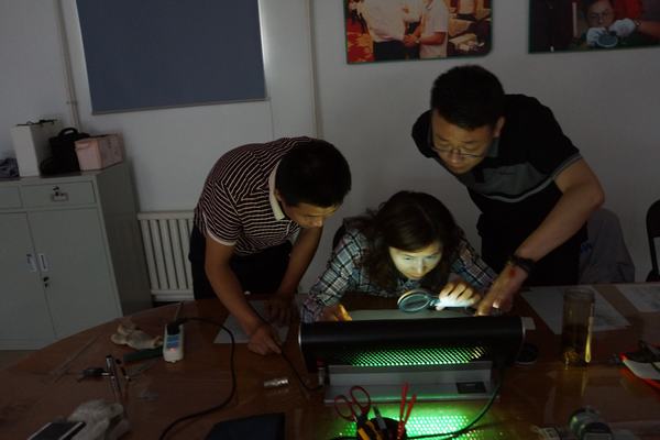 劉景鳳常務(wù)副會(huì)長與教練組長周樹春、專家組成員謝琦評判試件